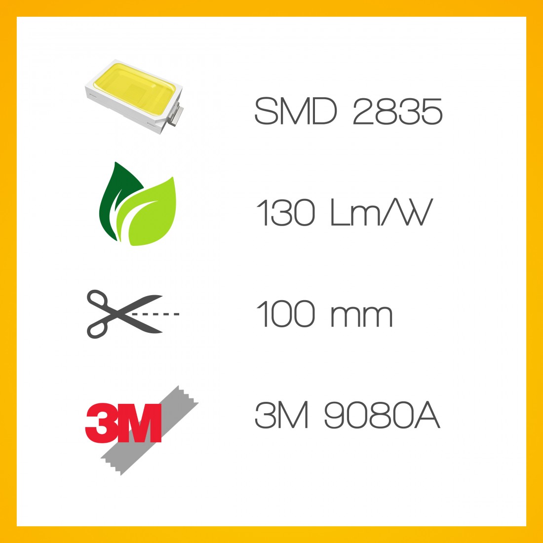 | SMD 2835 | 130 Lm/W | 100 mm | |||