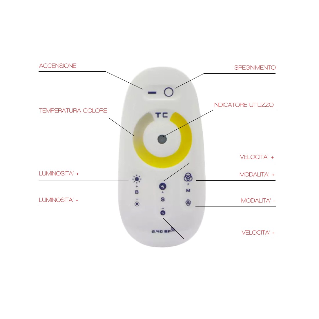 Controller per Strip Led Bianco Dinamico, con telecomando RF 2.4 GHz.